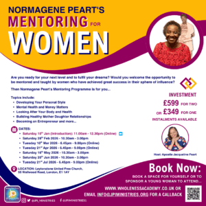 Jacqueline Peart is an ordained minister, businesswoman, author, mentor, trainer, speaker and active advocate for living and leading in wholeness. She is the founder of Jacqueline Peart International Ministries (JPIM), the home of the International Wholeness Centre (IWC) and The Wholeness Academy. As well as running her own management consultancy for over 25 years, working with organisations that include, local authorities, NHS, Shelter, Deloitte, UNICEF UK, CIPFA and more. Jacqueline serves on a number of leadership and oversight boards that include: The Cinnamon Network Advisory Council and Reformation3 Network of Churches and Ministries. She is also an Ambassador for Compassion UK children’s charity.